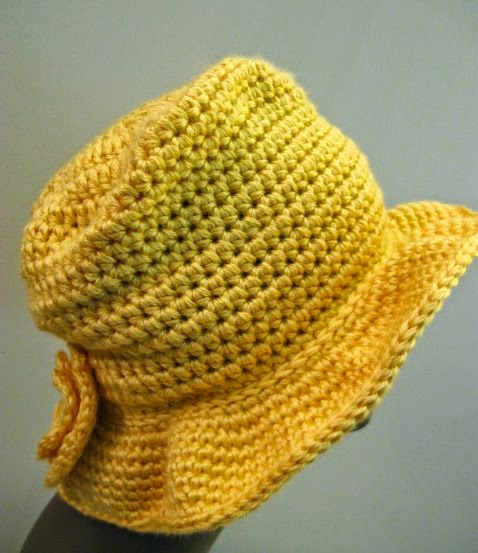 The yarn I used is soft, so the hat doesn't hold the indent in the top all that well...at least my first attempt didn't! ^_^ All of the 'bones' are there though, so I could starch it into the cowboy shape if I wanted to!...but I don't want to! ^_^ I like it just like it is!! :-) I even added a detachable flower brooch pin to the back of it, to make it even more like me!